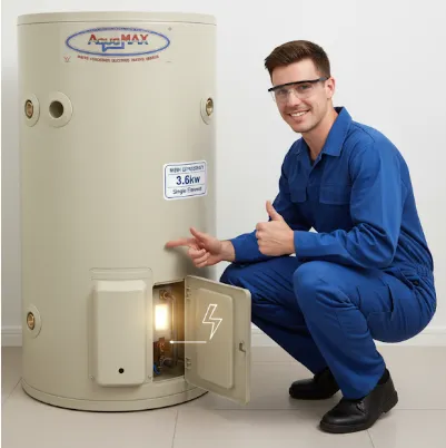 This water heater is equipped with a 3.6 kW single element, delivering efficient hot water for small households.